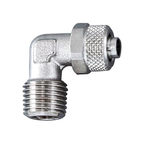 Raccord à visser en L, filetage extérieur conique R 1/4, pour tuyau 6/4 mm, SW 9, pression de travail max. 18 bar, laiton nickelé
