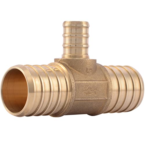 SharkBite Té réducteur à sertir de 2,5 cm x 2,5 cm x 1,27 cm, raccord de plomberie en laiton, tuyau PEX, PE-RT, UC415LFA
