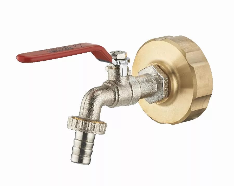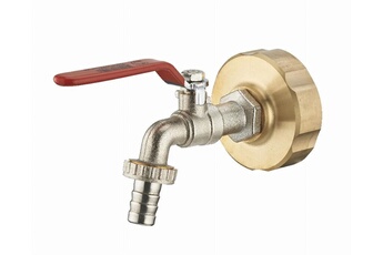 Kit pour cuve grillagée : 1 raccord laiton adaptateur de cuve 1000L S60x6 mm femelle F3/4' (20x27) + robinet de puisage 1/4 de tour mâle M3/4' nez