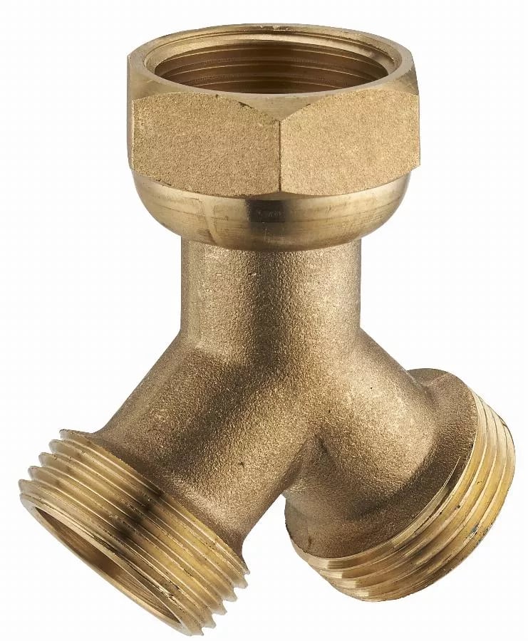 Raccord y laiton pour machine à laver : écrou libre femelle F3/4' (20x27) 2 sorties mâle M3/4' (20x27) NOYON & THIEBAULT - 841-2020C1
