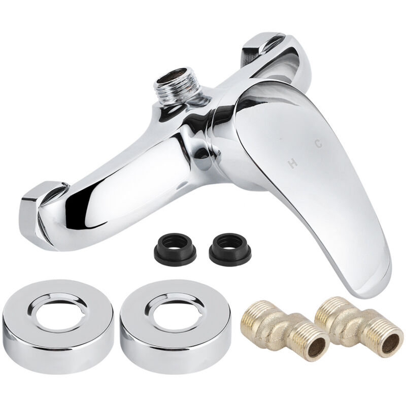 Robinetterie de Douche Murale en Cuivre Raccord Fileté G1/2 pour Mélangeur Eau Chaude/Froide, Accessoire Salle de Bain (Sortie d'Eau Vers le Haut