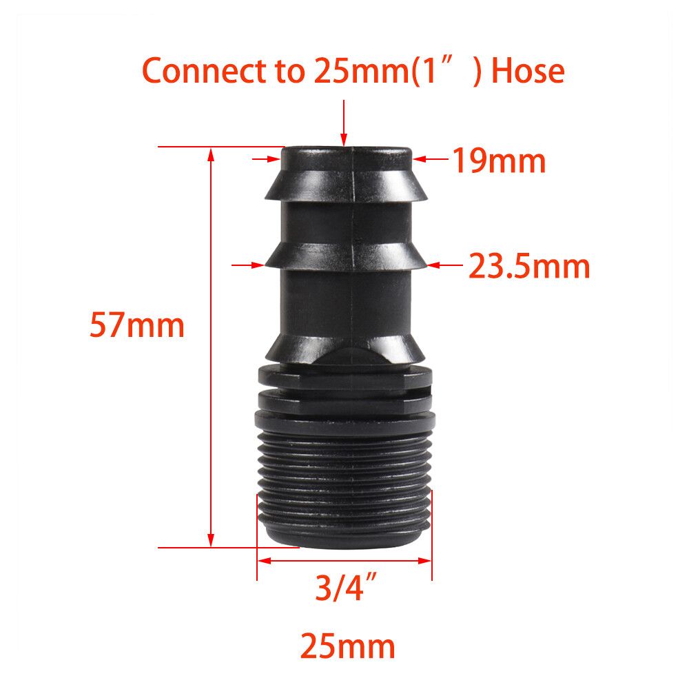 Raccord de tuyau d'arrosage en plastique,raccord de tuyau d'irrigation,connecteur cannelé,filetage mâle femelle,1/2,3/4,1/2,1 pouce,16mm,20mm,25mm - Type 3I4 inch to 25mm
