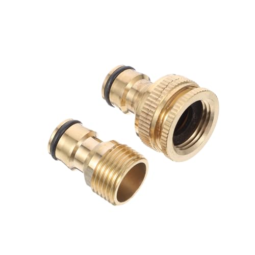 Xbessc Lot de 2 Paires Raccord de Tuyau d'Arrosage en Laiton, 2 en 1 Connecteur Rapide en Laiton, Raccord de Robinet de Jardin 3/4 Pouce, Adaptateur Universel pour Robinet Cuisine Jardin Extérieur