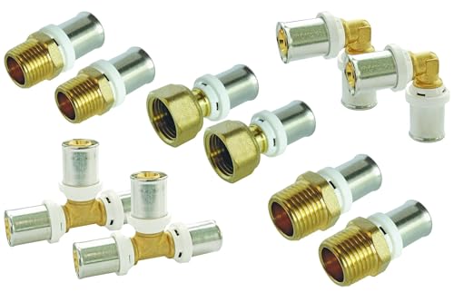 SOMATHERM FOR YOU - Assortiment de 10 Raccords à Sertir - Pour Tube Multicouche Ø16 - Inclut M12/17, M15/21, Écrou Tournant 15/21, Coudes et Tés Égaux - Profil H, RF, U