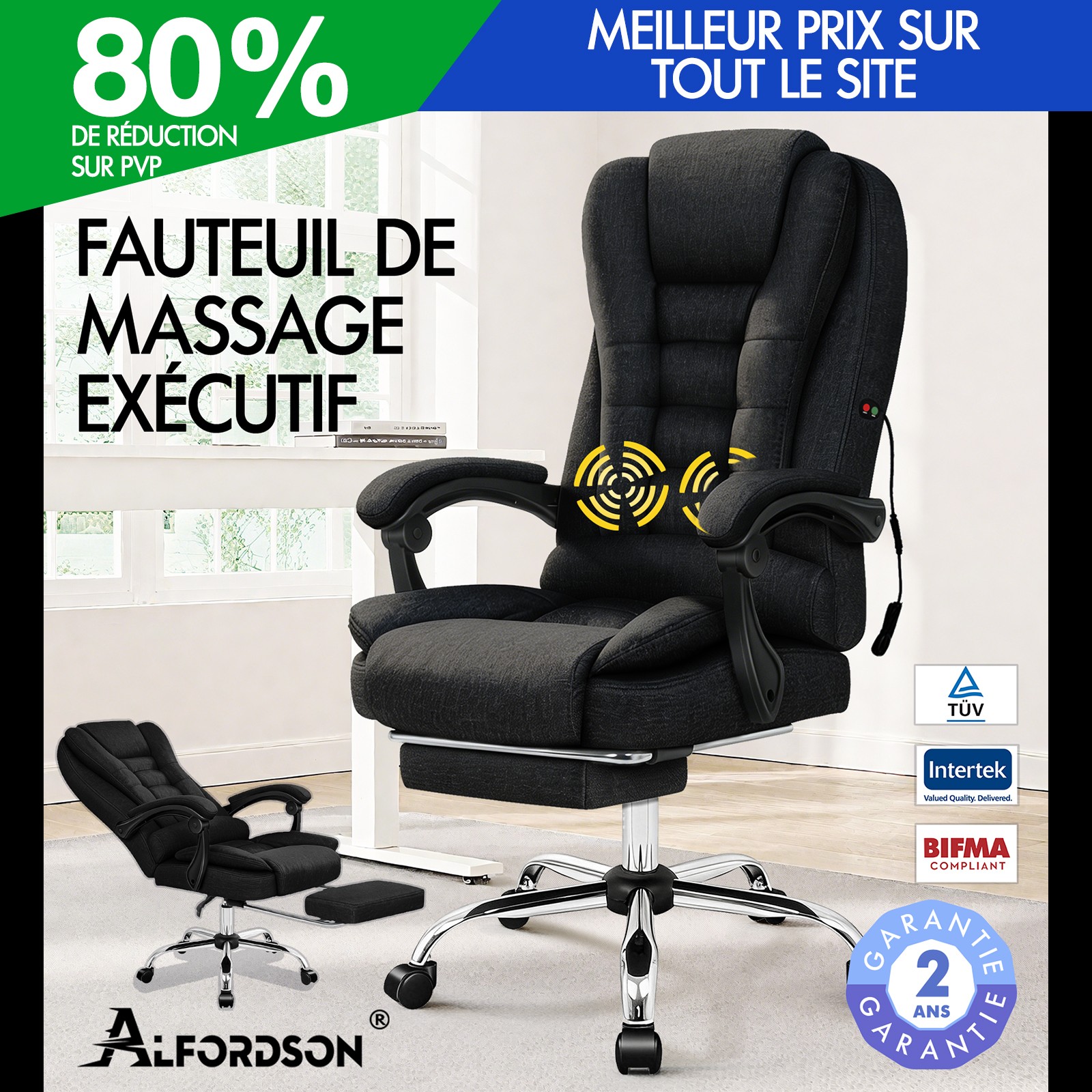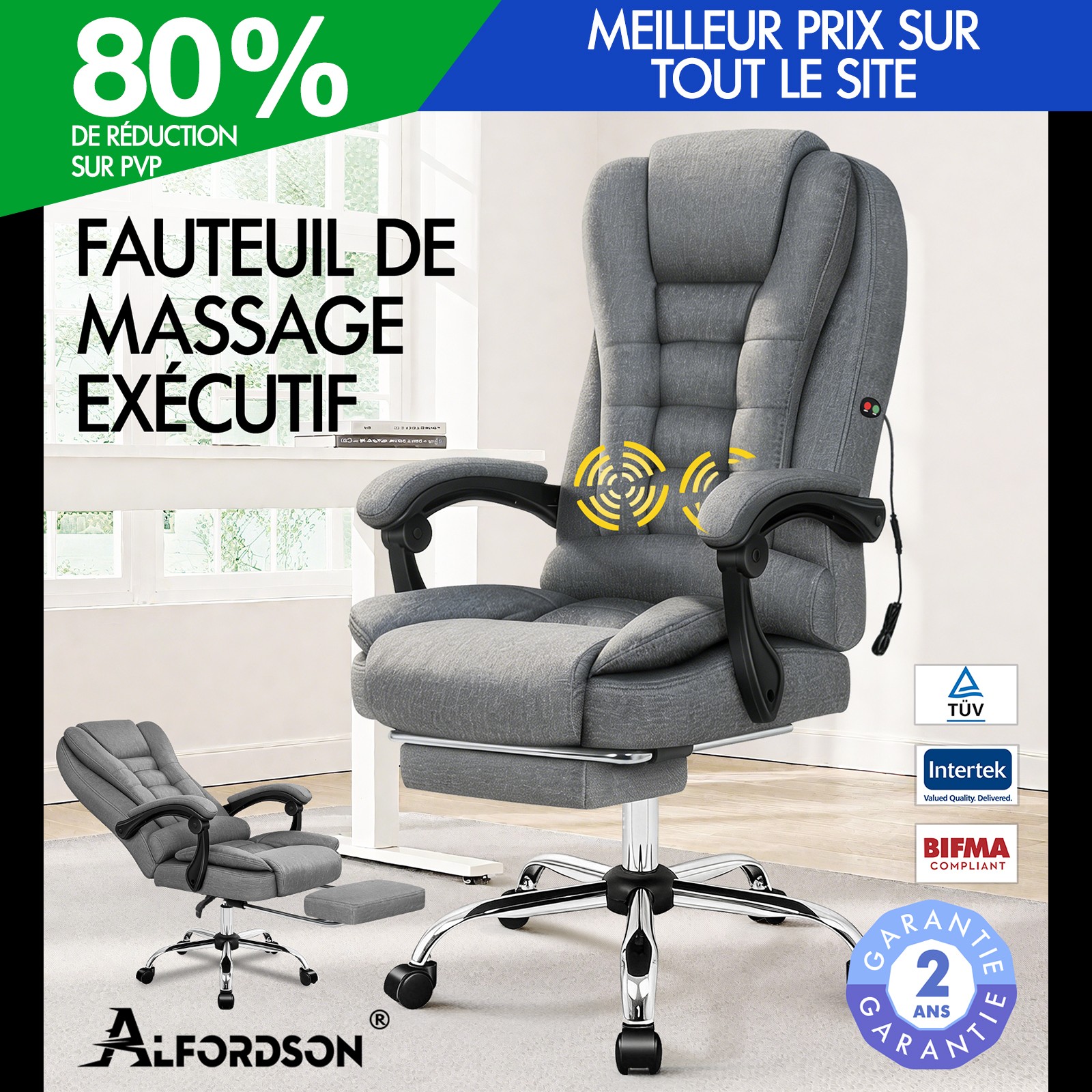 ALFORDSON Chaise de Bureau Massage Siège Exécutif Tissu Gaming Ordinateur Racer