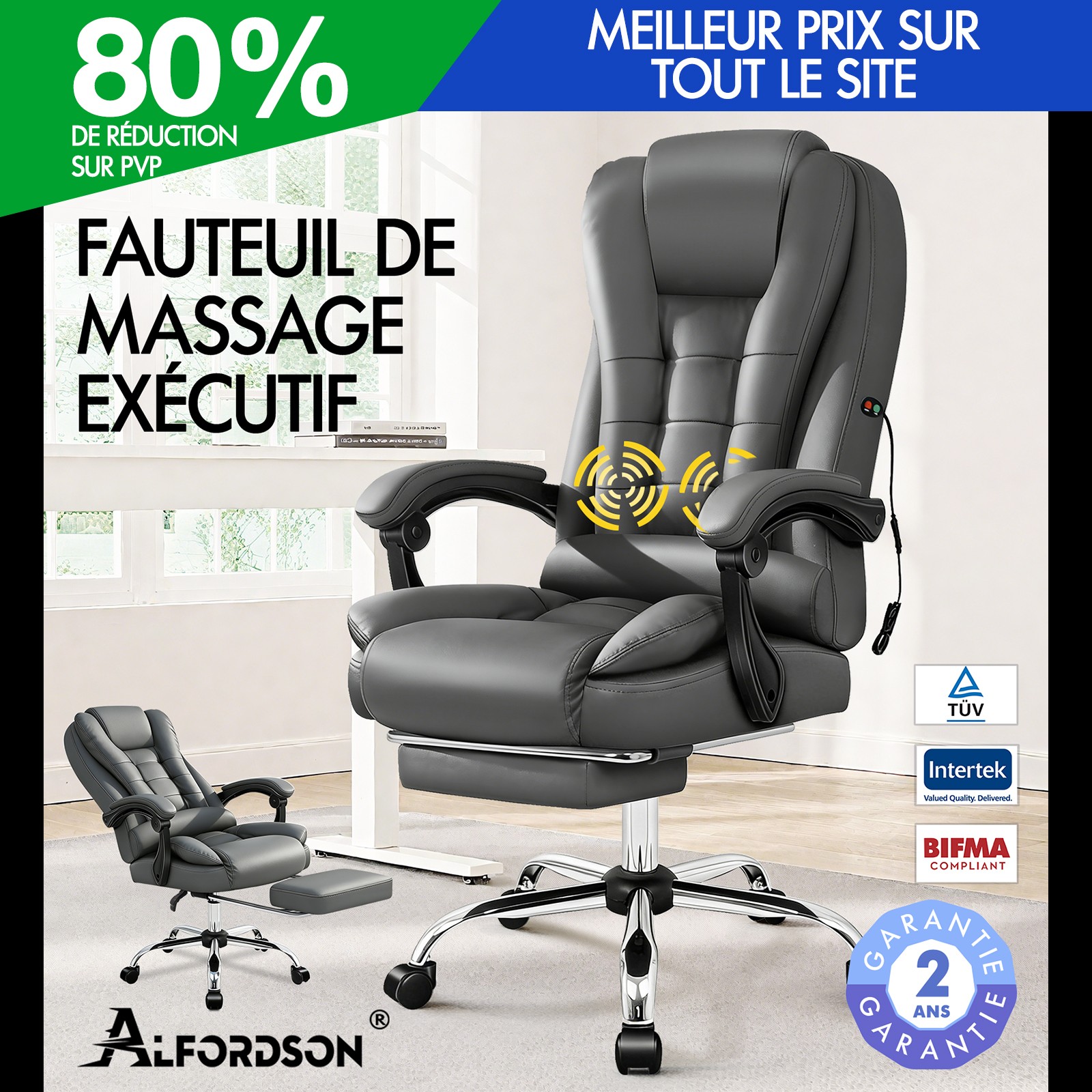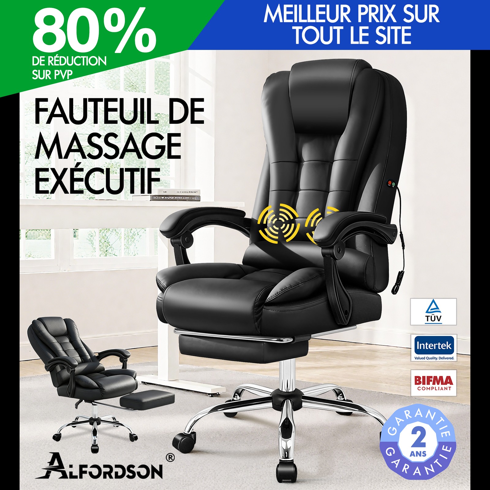 ALFORDSON Massage Chaise de Bureau Gaming Executive Siège Cuir Ordinateur Racer
