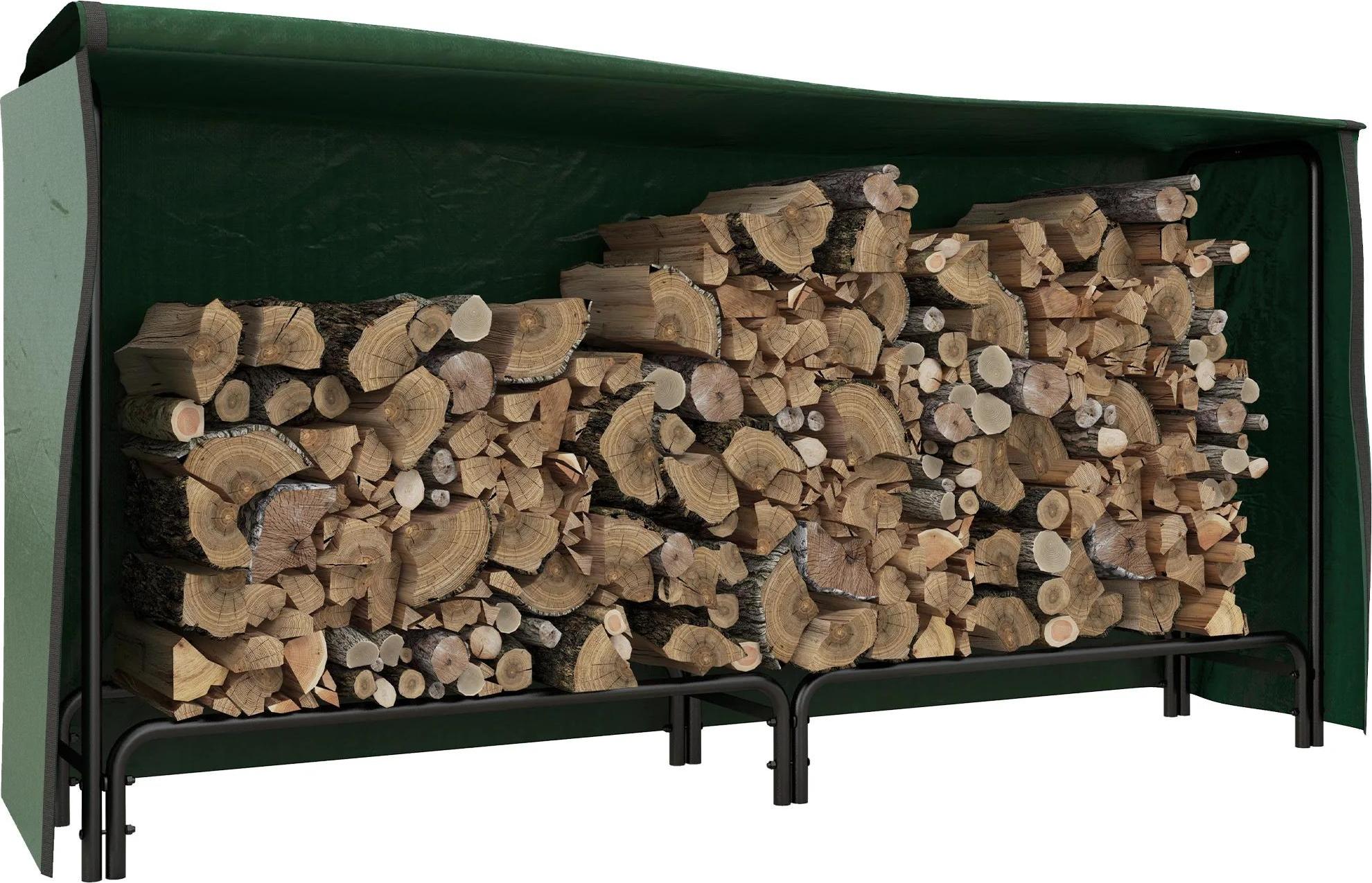 Rack à bois de chauffage - Support à bois de cheminée avec couvercle - 200 × 36 × 99 cm - Extérieur - Résistant aux intempéries - Noir et vert foncé