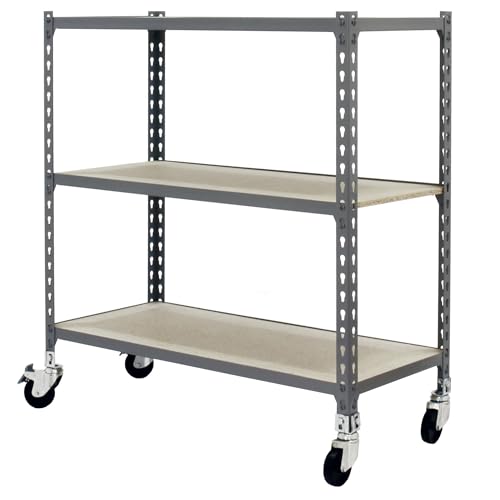 Simon Rack Étagère Rangement en Route à 3 Niveaux en Boix, 75 kg Capacité de Charge et Point de Flexion, 975x1000x400 mm, Étagère Charge Lourde, Étagère Garage, Gris/Bois - Maderclick