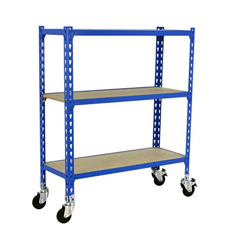Simon Rack Étagère Rangement en Route à 3 Niveaux en Boix, 75 kg Capacité de Charge et Point de Flexion, 975x800x300 mm, Étagère Charge Lourde, Étagère Garage, Bleu/Bois - Maderclick