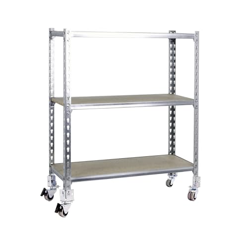 Simon Rack Étagère Rangement en Route à 3 Niveaux en Boix, 75 kg Capacité de Charge et Point de Flexion, 975x900x400 mm, Étagère Charge Lourde, Étagère Garage, Galvanisé/Bois - Maderclick