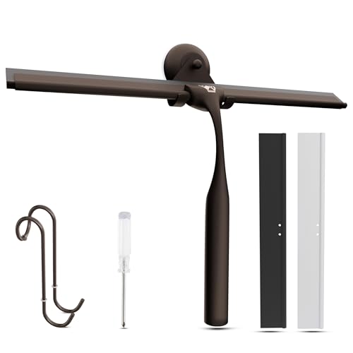 Wunset 40 CM Raclette Douche, Grande Raclette Bronze - Set 6 Pièces avec 2 Lèvres en Silicone De Rechange, Nettoyeur pour Douche, Salle De Bain, Carreaux, Miroirs, Fenêtres (40 CM, Bronze)