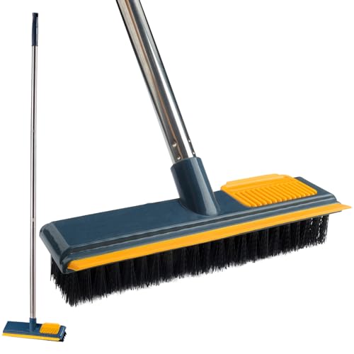 Roellgs Brosse à récurer à long manche avec long manche réglable, raclette et poils 2 en 1 pour nettoyer les cuisines, salles de bains, carreaux, garages, murs et piscines