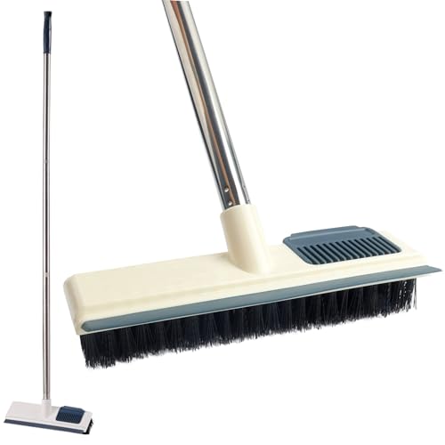 ASOUUNLD 2 en 1 Brosse à Récurer Sol avec Long Manche, Brosse Sol avec Poils Durable et Raclette avec Brosse de Nettoyage des Interstices pour Nettoyer Les Cuisines, Salles de Bains, Carreaux