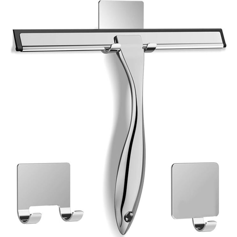 ecooe Raclette de Douche Vitre en Acier Inox, Douche Essuie-Glace 25cm avec Crochet sans Perçage et 1 Silicone Essuie-Glace de Rechange, Raclette Pour Salle De Bain,Miroir,Nettoyage en Verre,Carrelage
