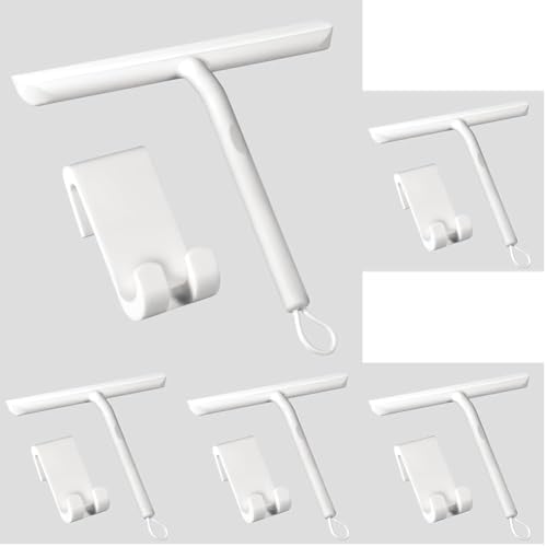 Vinabo Raclette de Douche - Nettoyage sans Traces pour Porte en Verre, Salle de Bain avec Support 21cm Blanc, Silicone pour Vitre de Voiture, Miroir (Lot de 5)