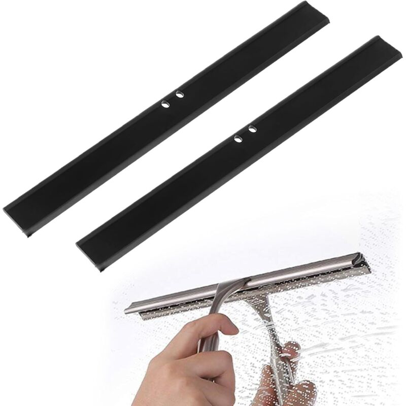2 PCS Lèvres en Caoutchouc Raclette Vitre, Lèvre en Silicone Racloir Pour Remplacement de Raclettes de Douche (25.6 * 2.3cm, Noir)
