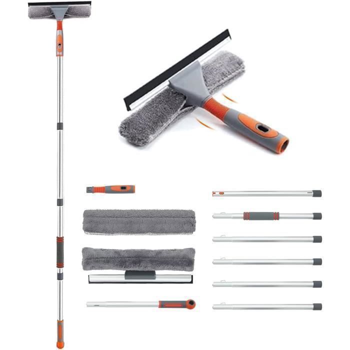 Nettoyeur de Vitre avec Long Manche Extensible 5m - Raclette de Fenêtre Professionnelle 35cm et Microfibre 36.5cm