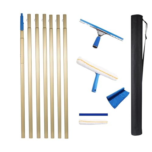 Raclette Vitre Professionnel avec Manche Télescopique Lave Vitre Telescopique pour Hautes Fenêtres Raclette Vitre Professionnel Manche Telescopique pour Nettoyer Vitres Nettoyeur(100CM*7)