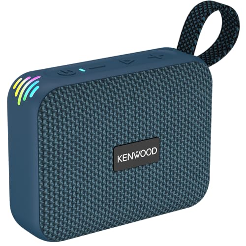 Kenwood AS-60BT-A Haut-Parleur Bluetooth Portable 5 W avec TWS stéréo, IPX7 étanche, radiateur Passif, Effet LED, Batterie Rechargeable jusqu'à 8,5 h, Design Compact et léger, Connexion 10 m, Bleu