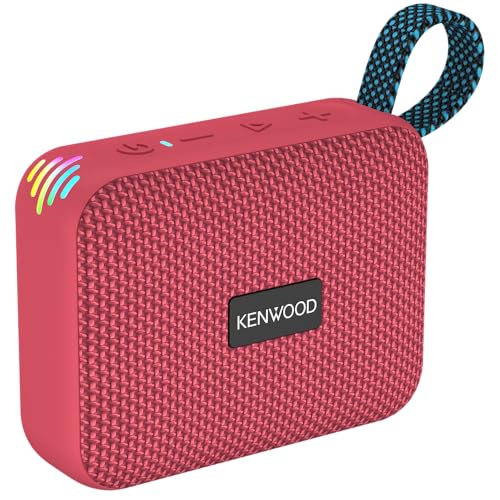 Kenwood AS-60BT-V Haut-Parleur Bluetooth Portable 5 W avec TWS stéréo, IPX7 étanche, radiateur Passif, Effet LED, Batterie Rechargeable jusqu'à 8,5 h, Design Compact et léger, Connexion 10 m, Rouge