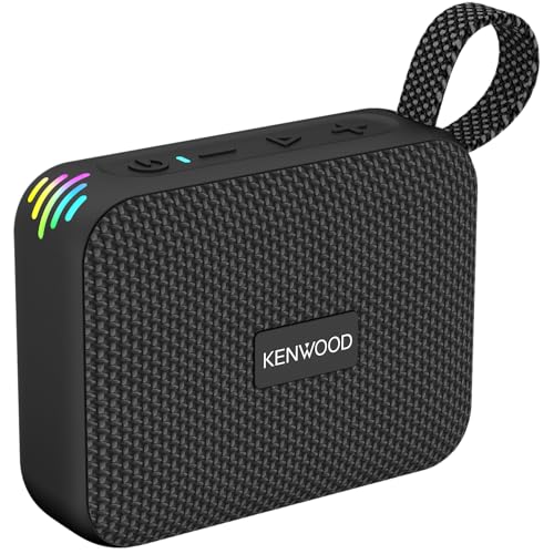 Kenwood AS-60BT-B Haut-Parleur Bluetooth Portable 5 W avec TWS stéréo, IPX7 étanche, radiateur Passif, Effet LED, Batterie Rechargeable jusqu'à 8,5 h, Design Compact et léger, Connexion 10 m, Noir
