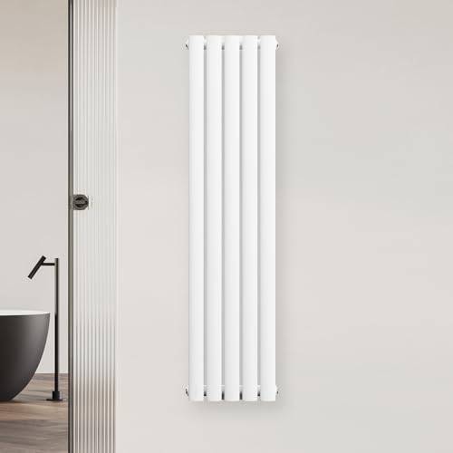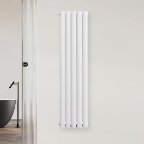 blumfeldt Radiateur Mural - 420 W, Acier Poudré, Simple Couche, Raccordement Central ½'', Installation Murale, Chauffage Efficace pour Salle de Bain, Salon & Bureau, 120x30 cm, Blanc