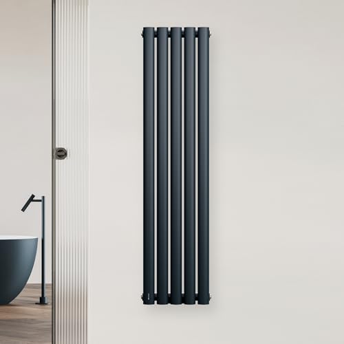 blumfeldt Radiateur Mural - 420 W, Acier Poudré, Simple Couche, Raccordement Central ½'', Installation Murale, Chauffage Efficace pour Salle de Bain, Salon & Bureau, 120x30 cm, Anthrazit