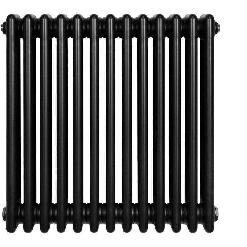 Radiateur Traditionnel à 4 Colonnes 600 x 605 mm en Acier Carbone Noir Chauffage Central Horizontale Monté Sur Mur [Brosse de Nettoyage & Supports