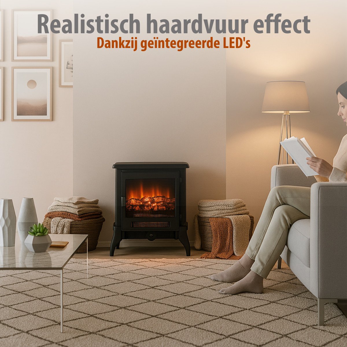 DEUBA® Radiateur électrique Effet cheminée LED transportable 2 Niveaux Chauffage pour intérieur décoration cheminée décorative