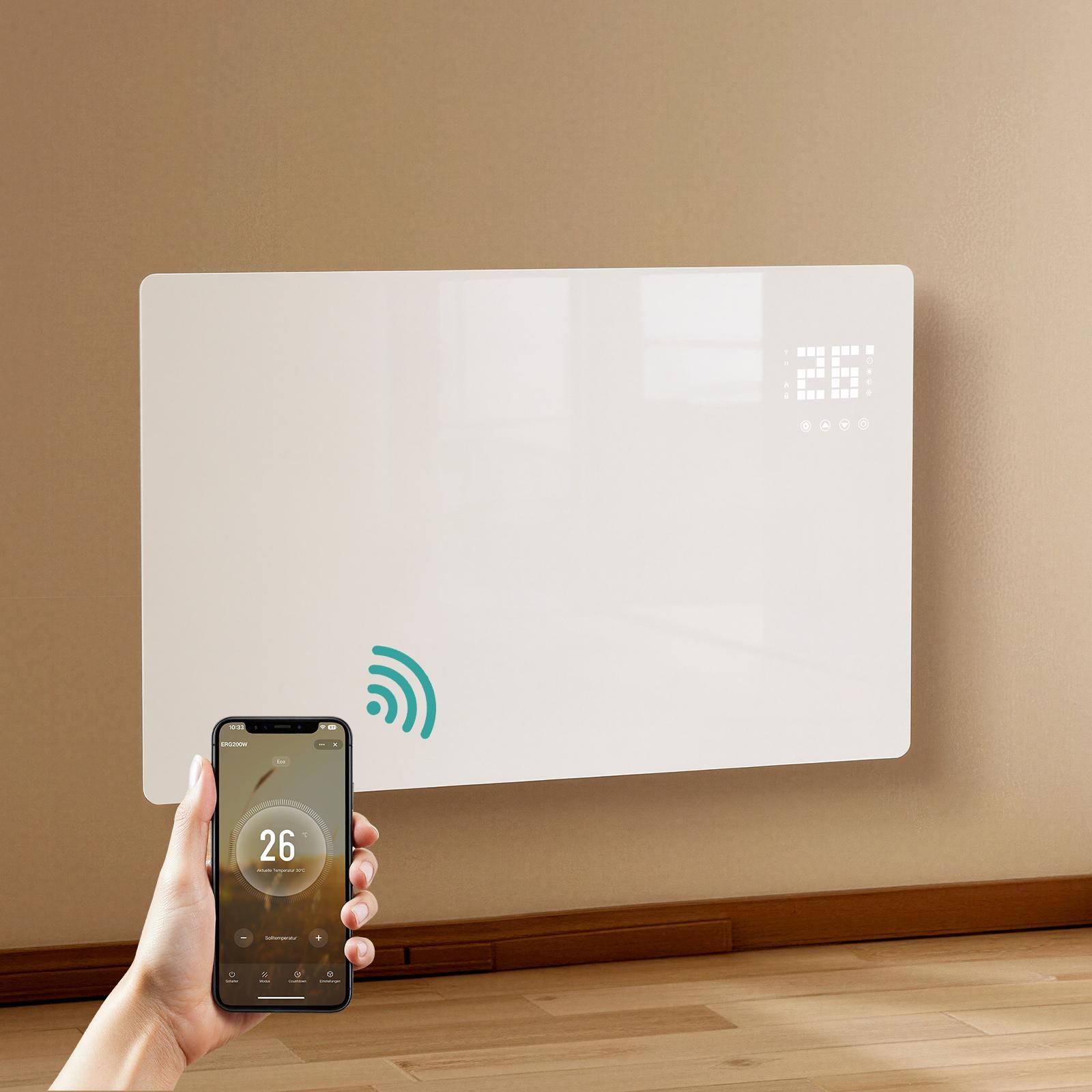 Convecteur électrique EMKE 2000 W, radiateur design en verre avecWiFi et application, radiateur pour chambre à coucher, salon, écran tactile LED, montage mural/appareil sur pied