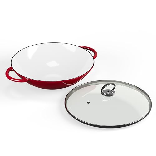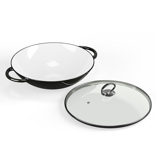 ToCi Wok, Poele Wok Induction avec Couvercle, Woks et Poêles à Frire Émaillés, en Fonte, Poignées, Antiadhésif et Profond pour Plaque Cuisine à Induction, Vitrocéramique, Gaz, Electrique
