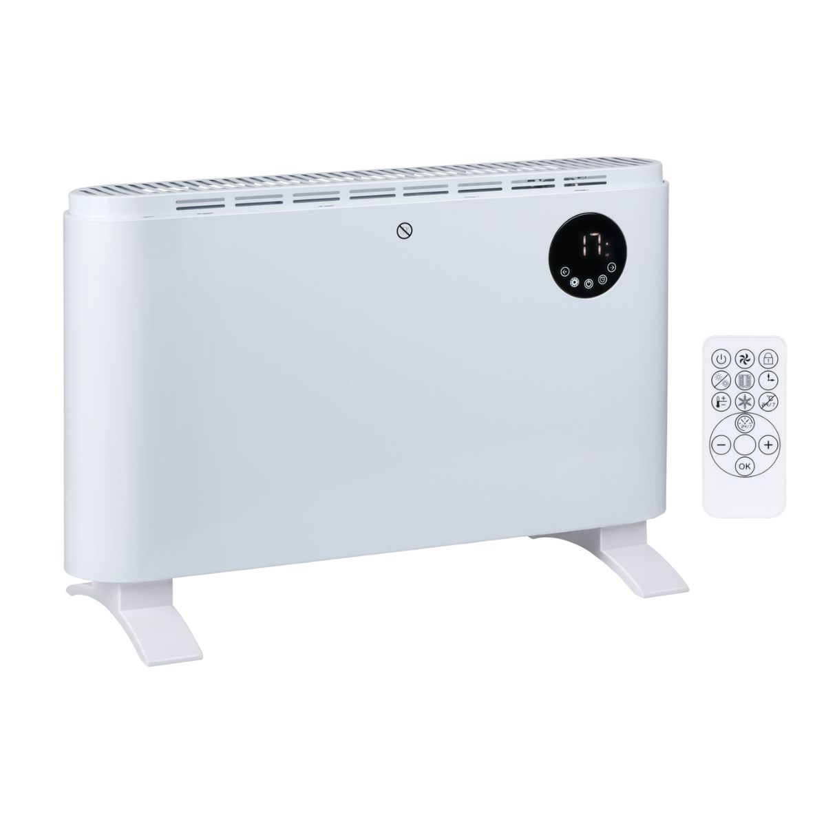 M mimotec – Radiateur convecteur électrique en verre blanc Glass 2000W, silencieux 0 dB, avec écran LED, minuterie et verrouillage enfant, IP24 et anti-surchauffe, installation au sol ou murale.