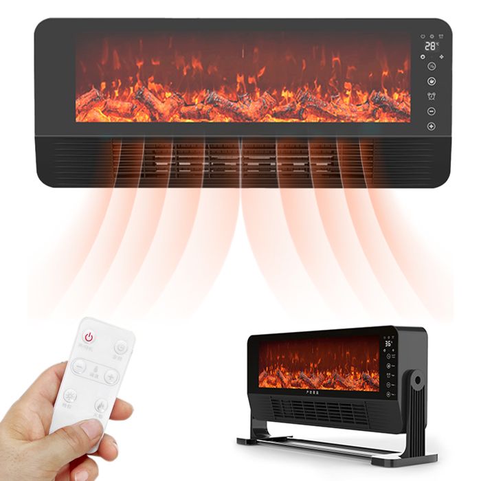 Radiateur mural-chauffage mural cheminée électrique télécommandé ventilateur chaud de bureau Simulation de flamme murale au sol