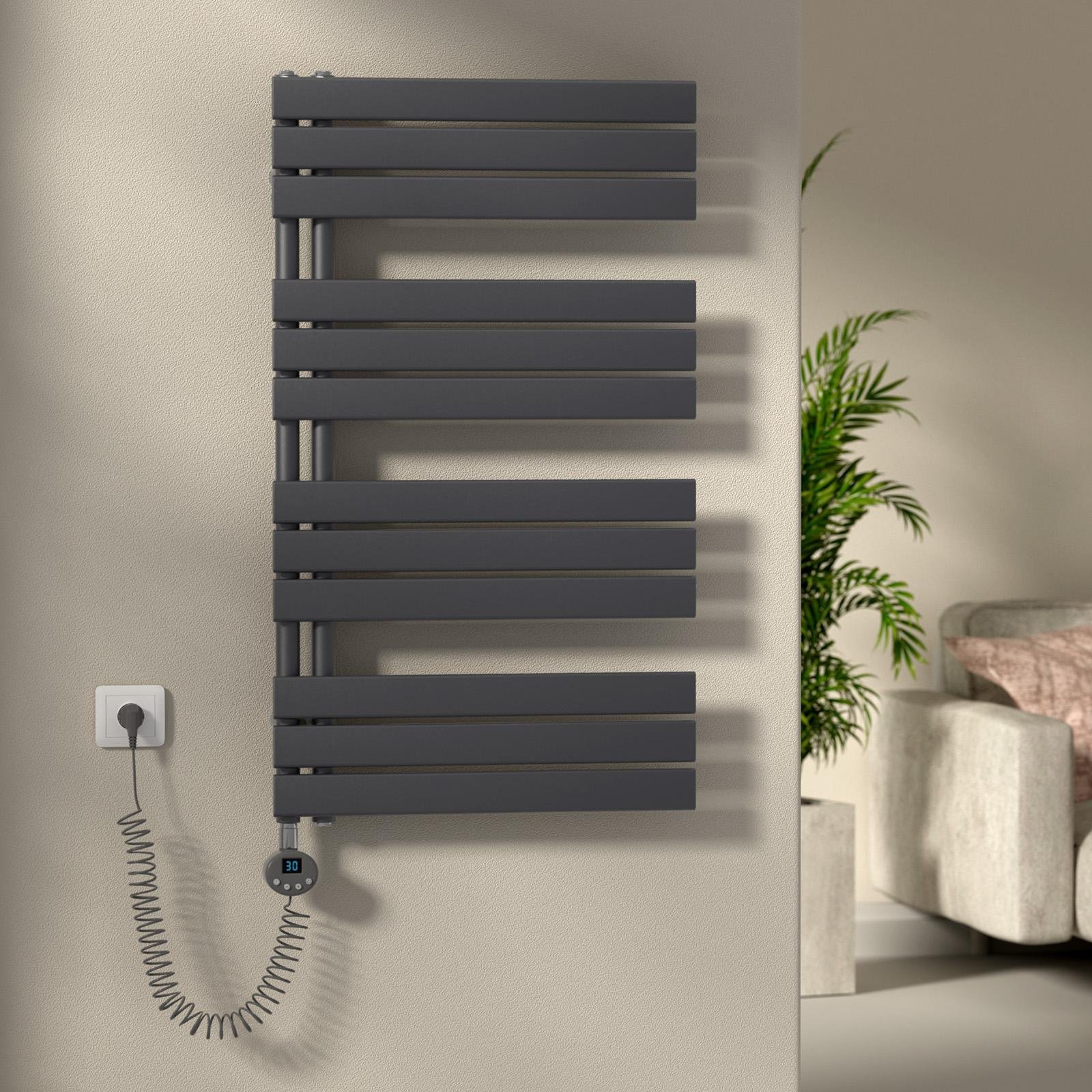 LuxeBath Radiateur Électrique pour Salle de Bain Iron EM, 500x1200mm Anthracite + Résistance 900W, Thermostat Affichage Numérique, Porte-Serviettes Mural à Cartouche Chauffante, Radiateur à Panneaux