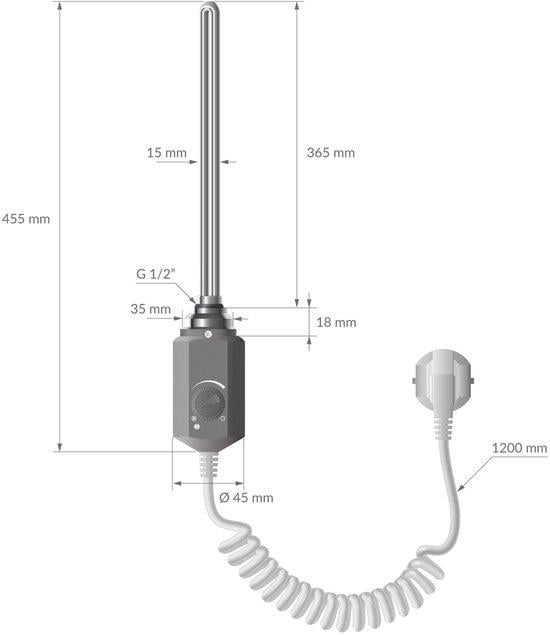 EMKE Eléctrique de la Salle de Bain, Blanc Cartouche de Chauffage avec Régulateur de Température, Résistance pour radiateur avec Chronométrage, Élément Chauffant Electrique 1200W