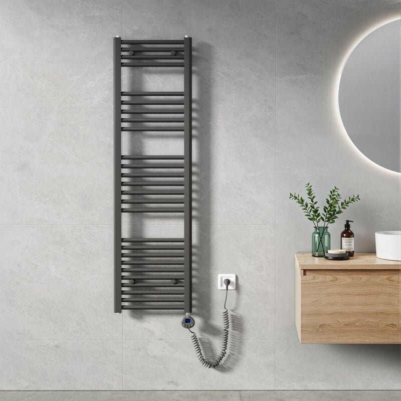Sèche Serviette électrique 140 x 40 cm, Anthracite Tubes Ronds Radiateur Mural Salle de Bain avec Timing Elément de Chauffage Electrique - Heilmetz
