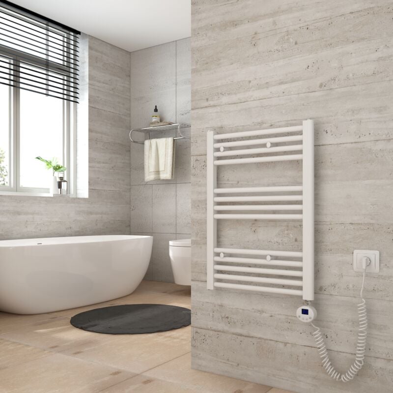 Sèche Serviette électrique 70 x 50 cm, Blanc Tubes Ronds Radiateur Mural Salle de Bain avec Timing Elément de Chauffage Electrique - Heilmetz