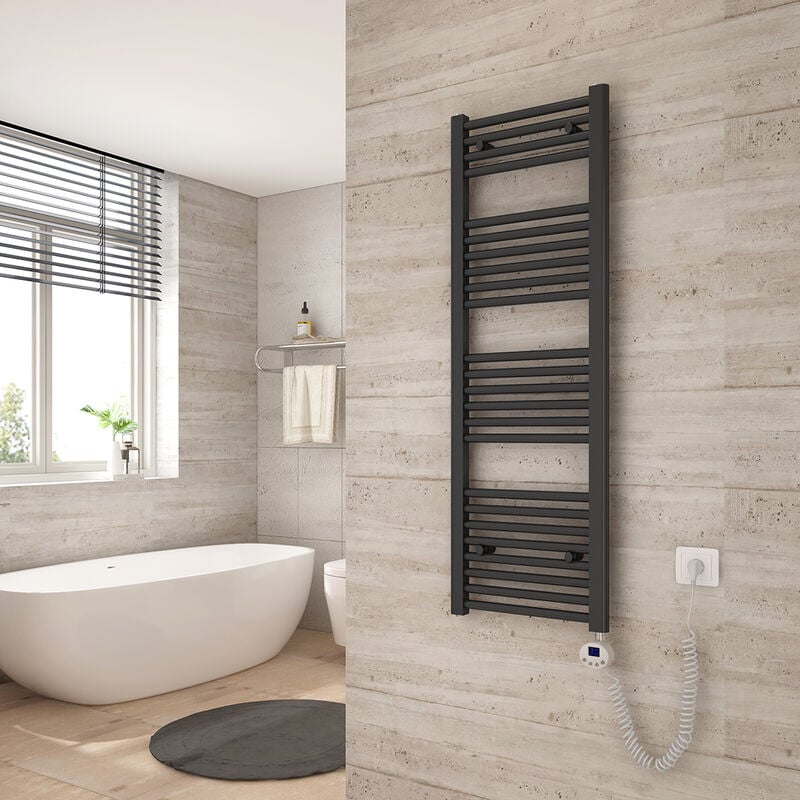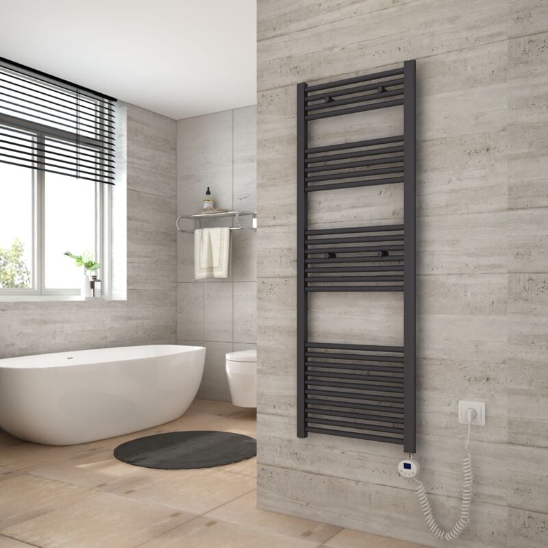 Sèche Serviette électrique 140 x 60 cm, Anthracite Tubes Ronds Radiateur Mural Salle de Bain avec Timing Elément de Chauffage Electrique - Heilmetz