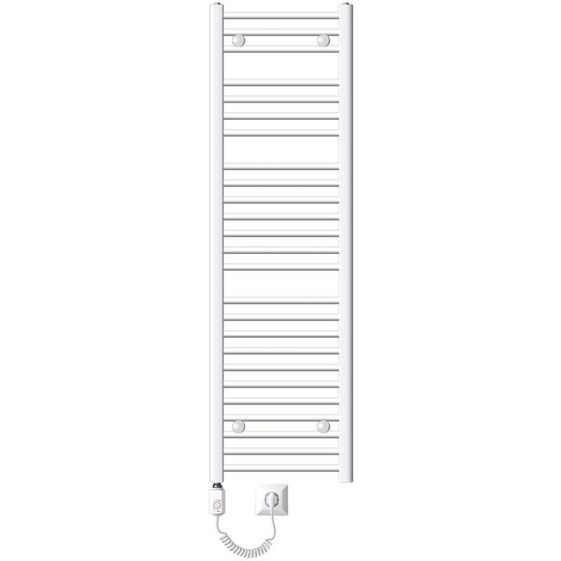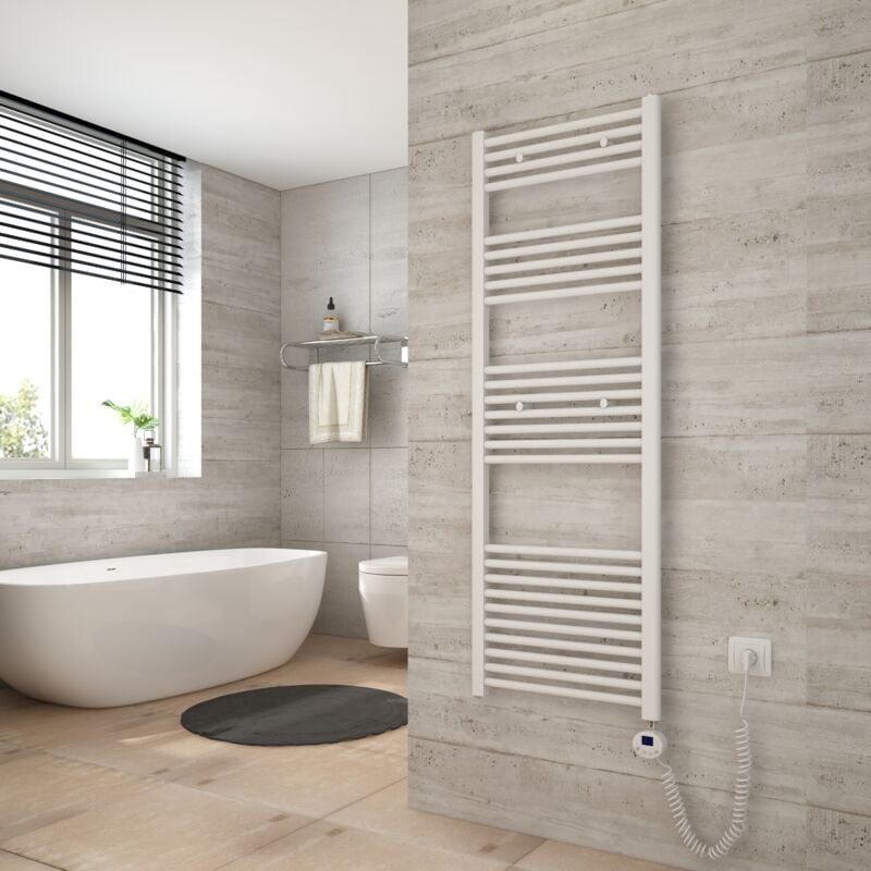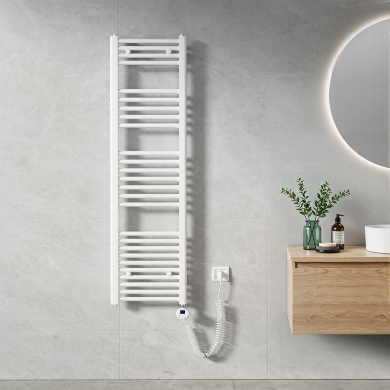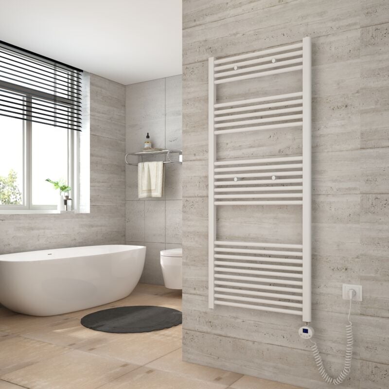 Sèche Serviette électrique 140 x 50 cm, Blanc Tubes Ronds Radiateur Mural Salle de Bain avec Timing Elément de Chauffage Electrique - Heilmetz