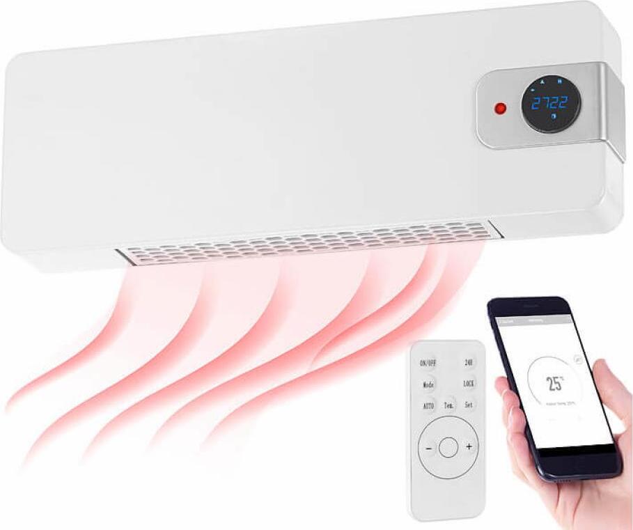 Radiateur soufflant céramique mural avec télécommande Radiateur soufflant mural + télécommande 2200W