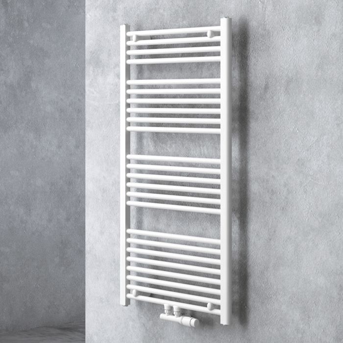 doporro Radiateur de Salle de Bain Sèche-Serviette 120x50cm Radiateur Tubulaire Vertical Chauffage à Eau Chaude Blanc