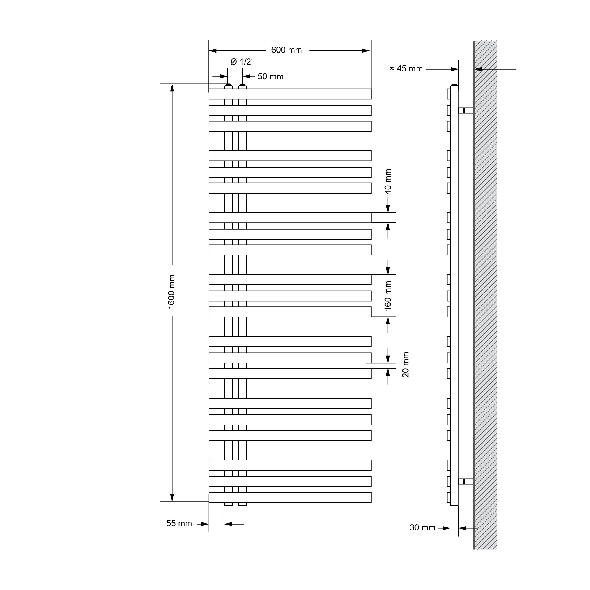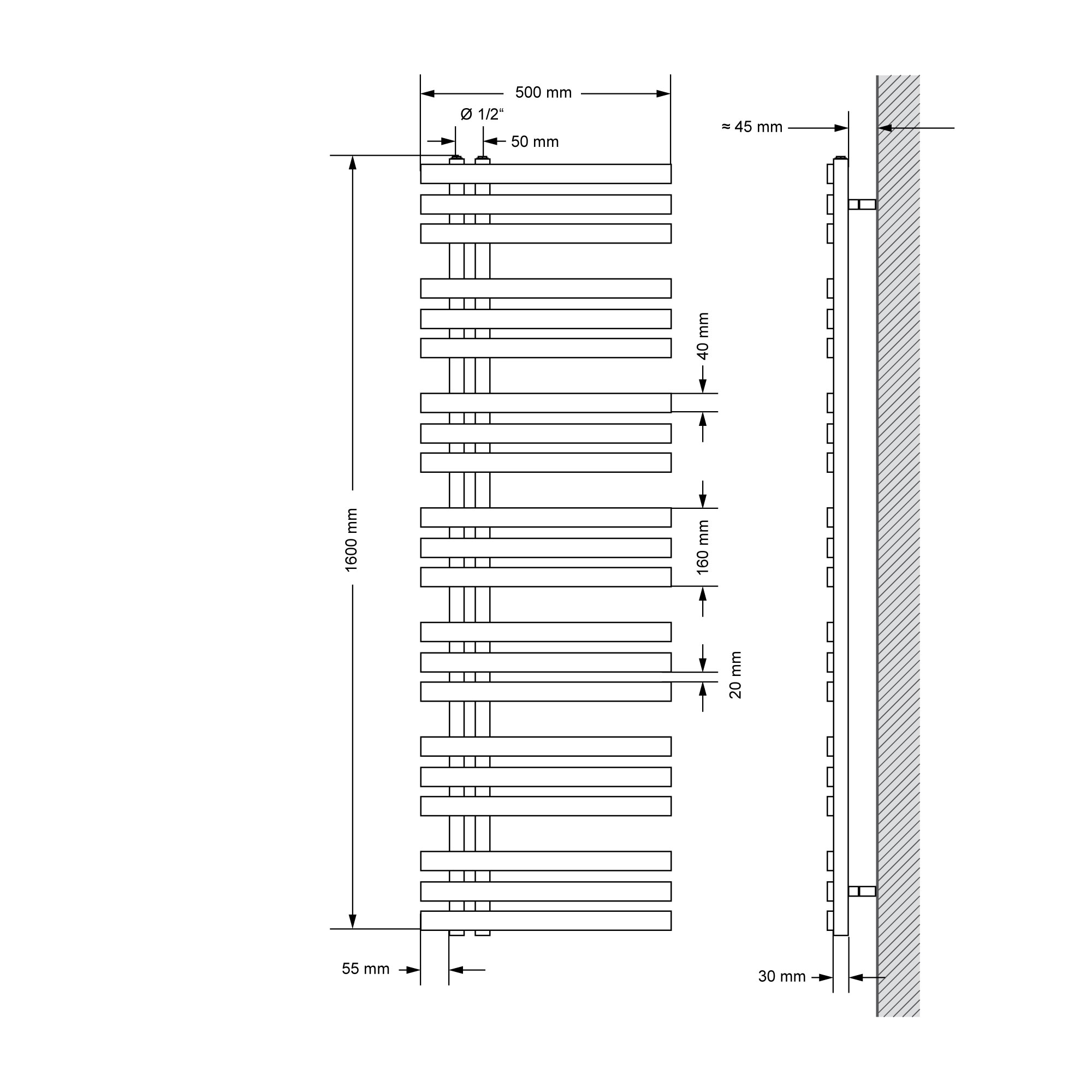 Radiateur aluminium design vertical – Anthracite – 160 cm x 24,5 cm - Aloa