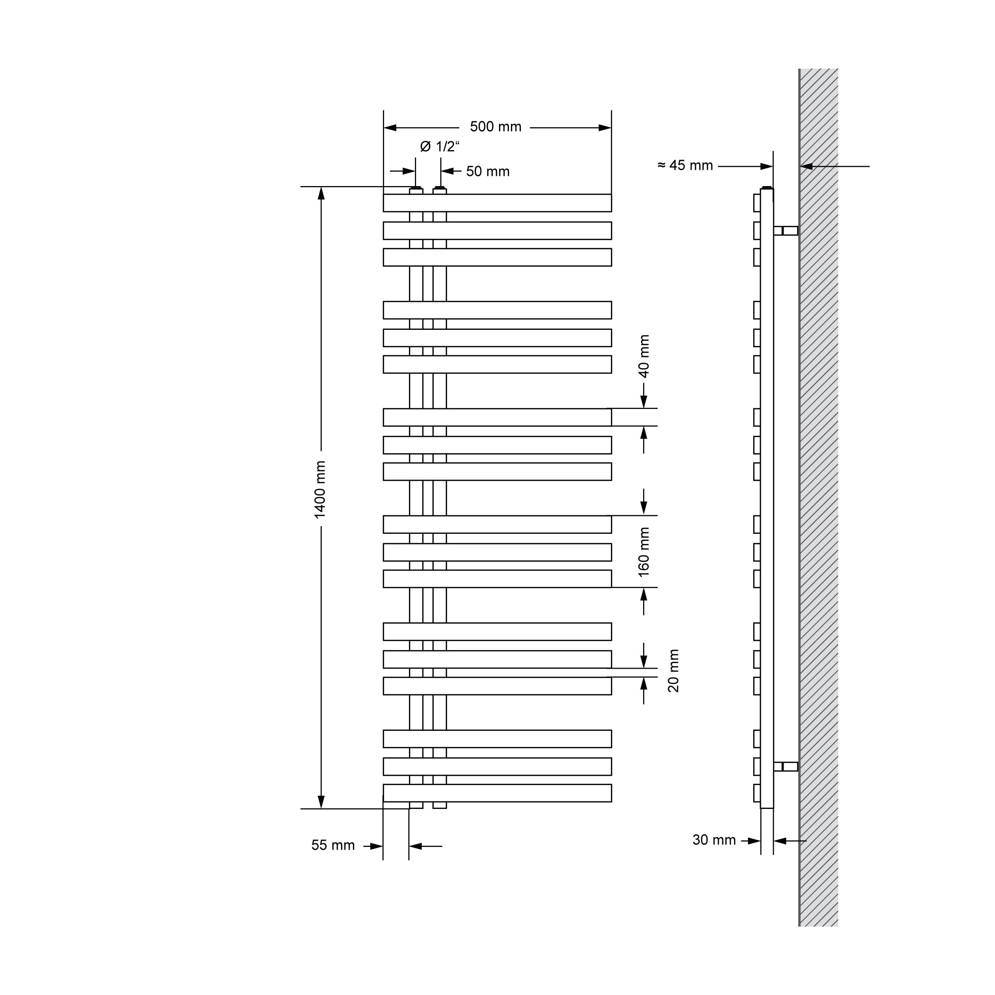 Radiateur aluminium design vertical – Anthracite – 160 cm x 55 cm - Laeto