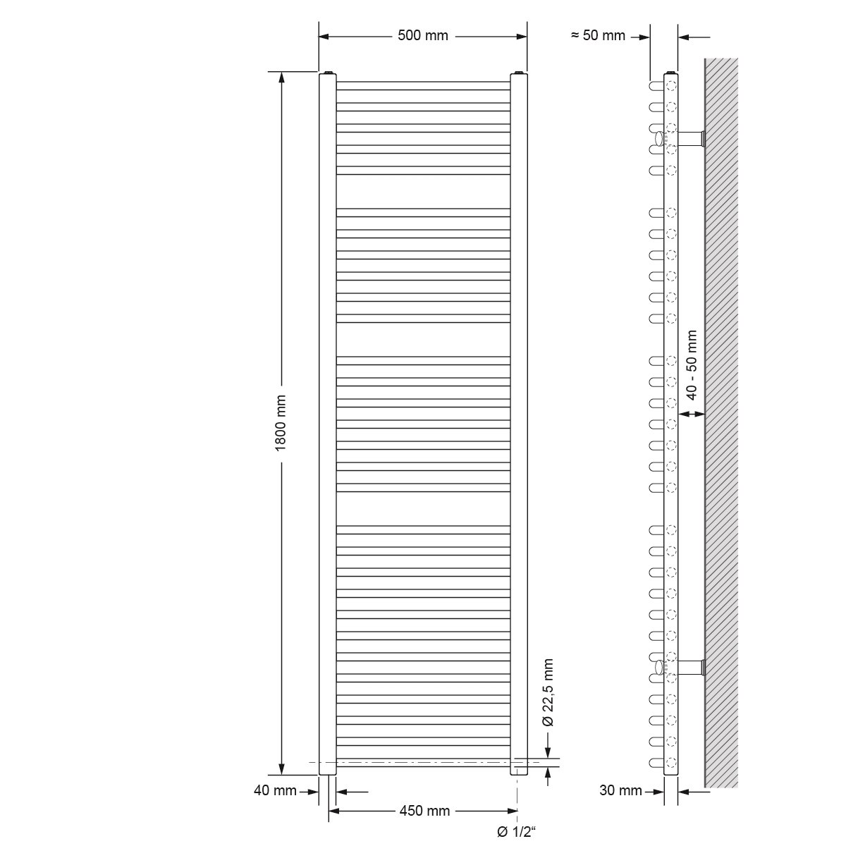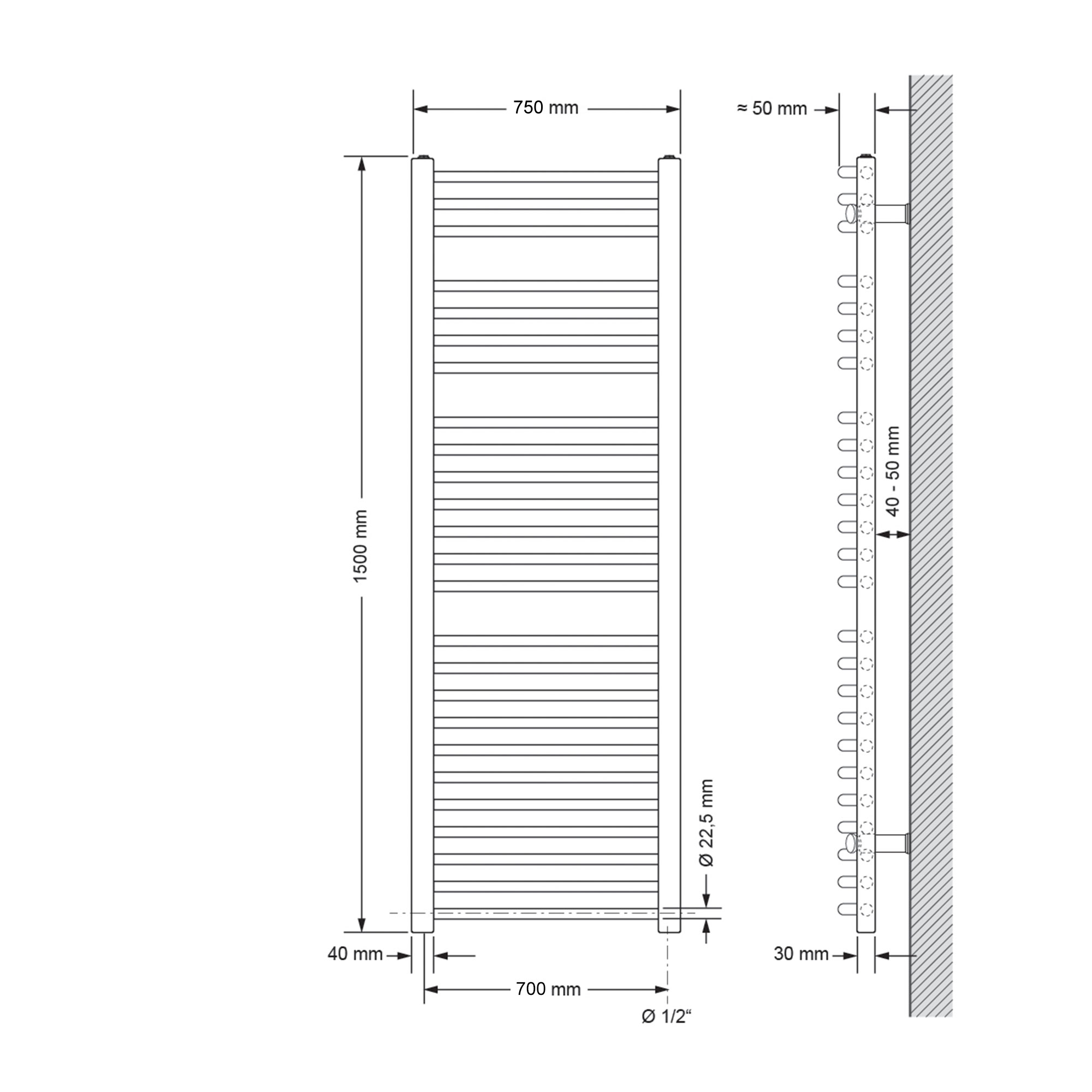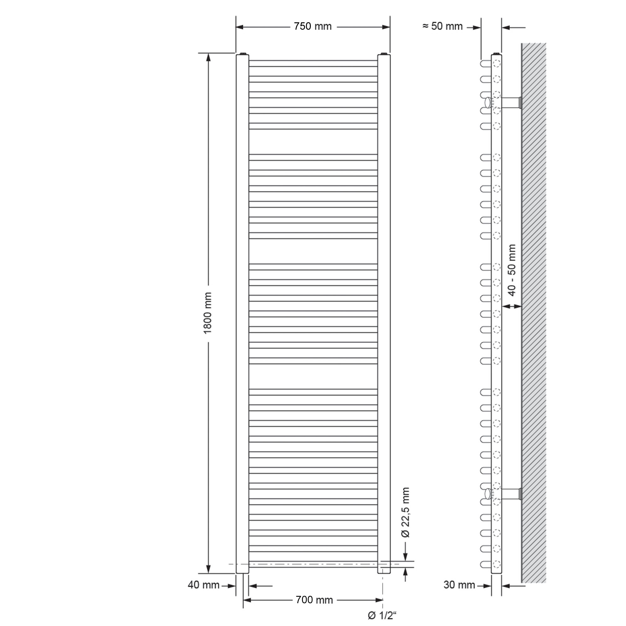 Radiateur design vertical blanc mural avec/sans tige électrique taille au choix
