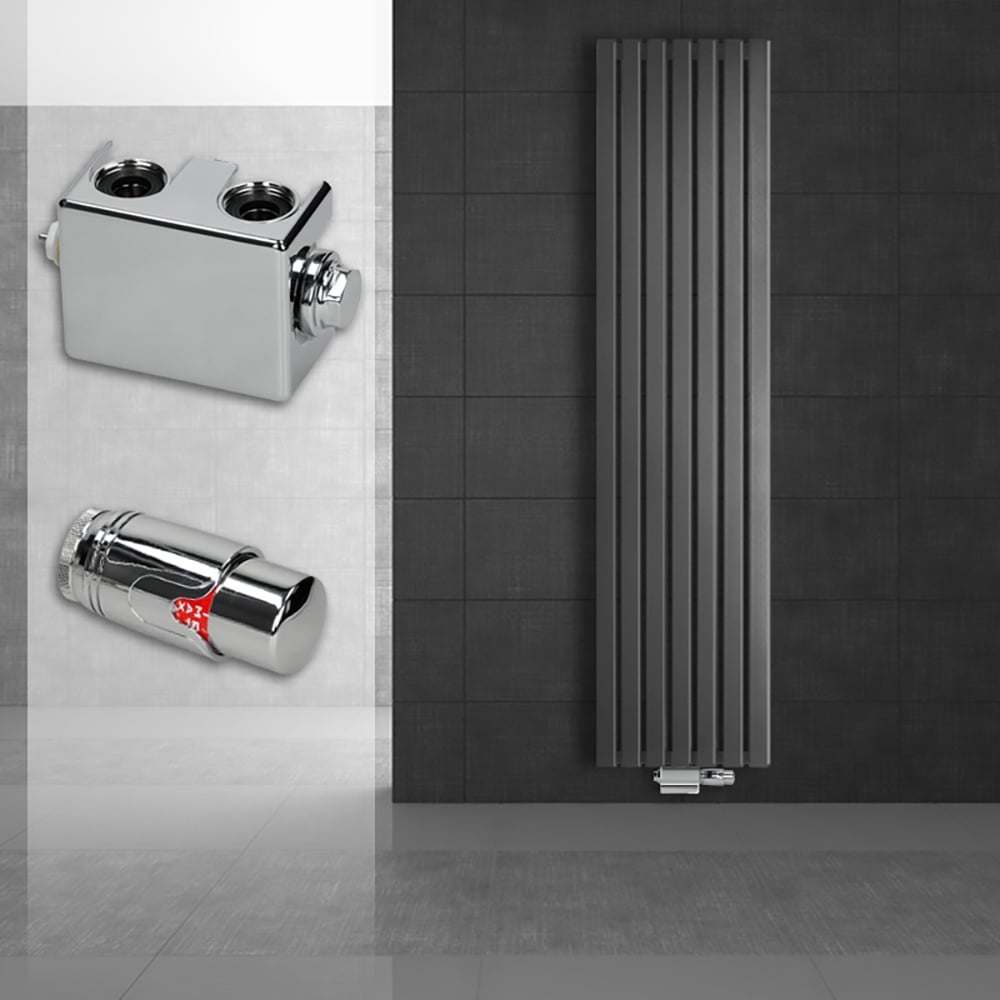 EMKE Radiateur vertical, radiateur design panneau 1600 x 460 mm, anthracite, plat, monocouche, raccordement central chauffage 850 W
