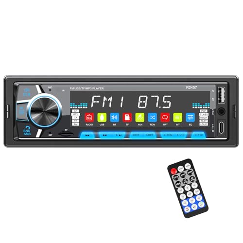 NHOPEEW 1 Din Autoradio - Auto Radio avec Double Bluetooth FM - Radio Bluetooth Voiture Support 7 Color Backlights - U Disk/AUX in/TF Card Play/APP Locate and Find The Car + Remote Control