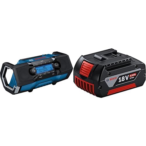 Bosch Professional 18V System Radio de Chantier sans-Fil GPB 18V-2 SC (réception Via Dab+, Bluetooth, FM et AUX, avec Bloc Secteur) & 1600Z00038 GBA Batterie Lithium-ION CoolPack 18 V 4,0 Ah, Noir