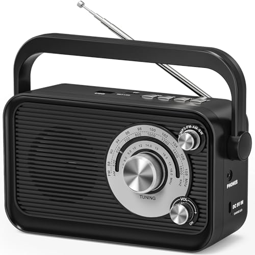 Radio Nostalgie, Radios Rétro avec Bluetooth, Emplacement pour Carte TF, Batterie Rechargeable 2000mAH, Haut Parleur 5 Watts, Radios Vintage avec AUX/USB, Radio pour Cuisine/Chambre/Bureau