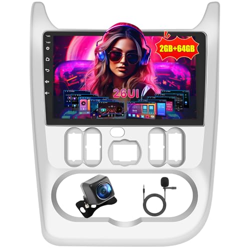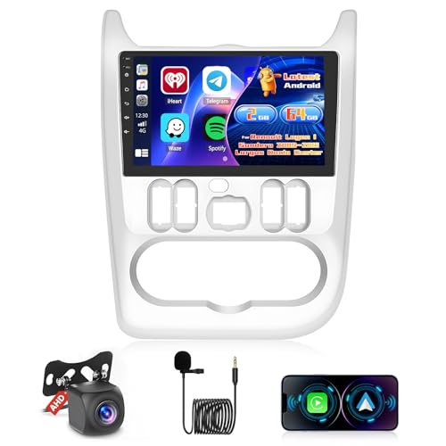 Roinvou 2+64G Autoradio Android pour Renault Logan 1 Sandero 2009-2015 Largus Dacia Duster avec CarPlay sans Fil Android Auto, 9 Pouces Écran Radio Wi-FI GPS Bluetooth EQ FM/RDS SWC Caméra de Recul