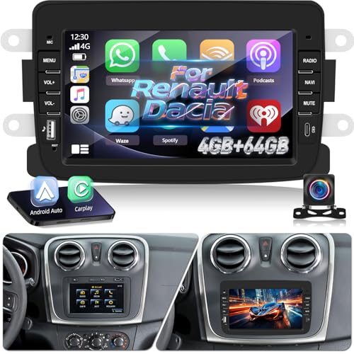 Autoradio pour Dacia Sandero Duster Logan Dokker Capture Renault Radio sans Fil CarPlay Android Auto Bluetooth/FM/AM RDS